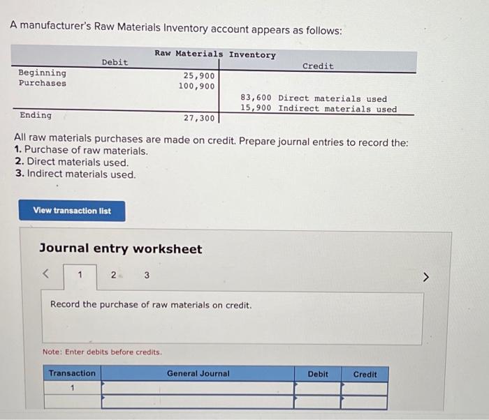 Solved A manufacturer's Raw Materials Inventory account